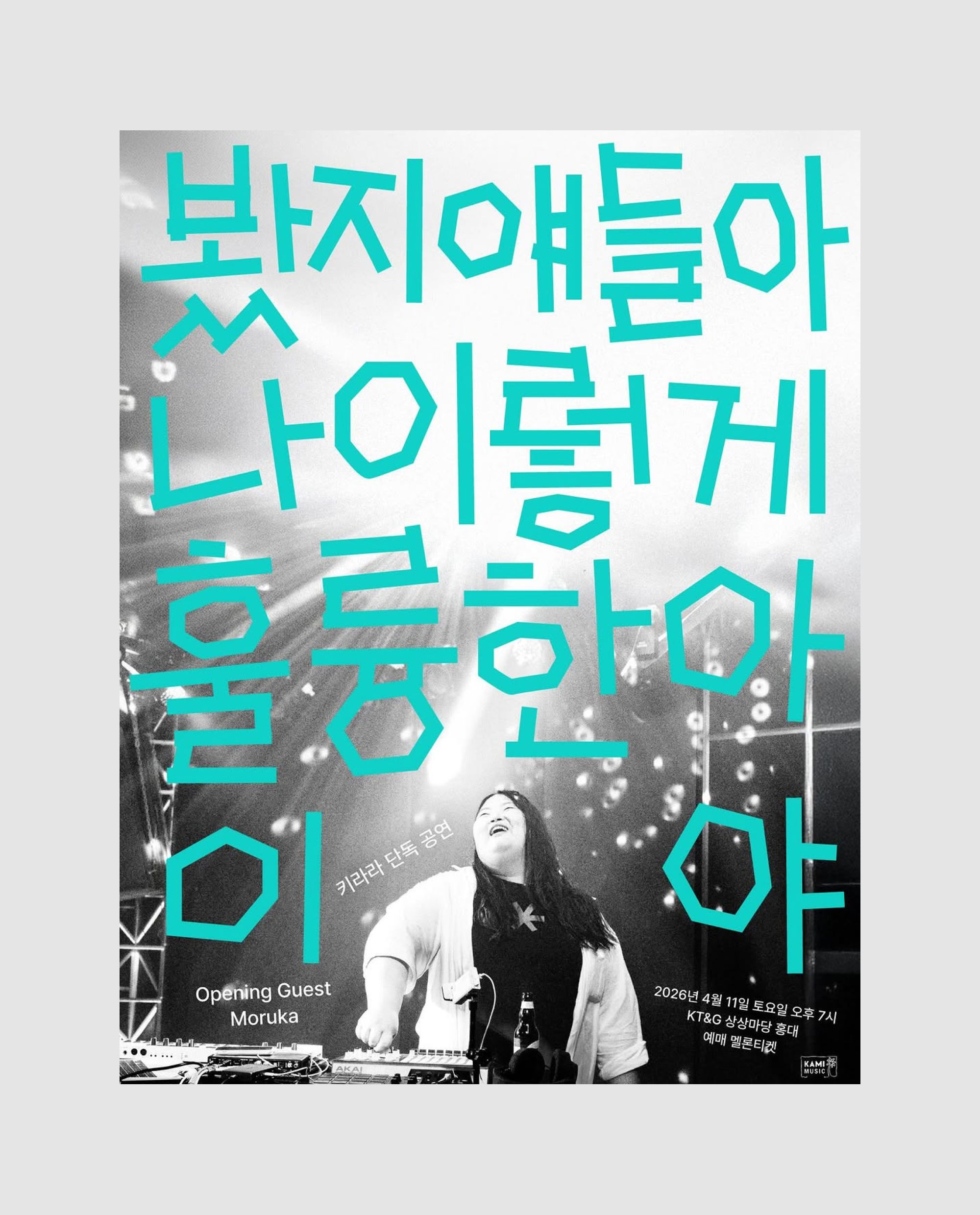사람들이 제 공연을 보다가 이태원 클럽에도 가고, 언더그라운드 신에 관심을 가지게 된다면 좋겠어요. 한국에 전자 음악 잘하는 억울한 사람들 너무 많거든요. 사람들이 제 공연을 보다가 어쩌다 이태원 클럽에도 갈 수 있다면 가장 좋은 일이지 않을까 싶습니다. 그러니까 어떻게 보면 언더그라운드에 관심을 가지게 할 ‘마중물’ 같은 거죠. 네, 정말 그렇게 되었으면 좋겠어요.