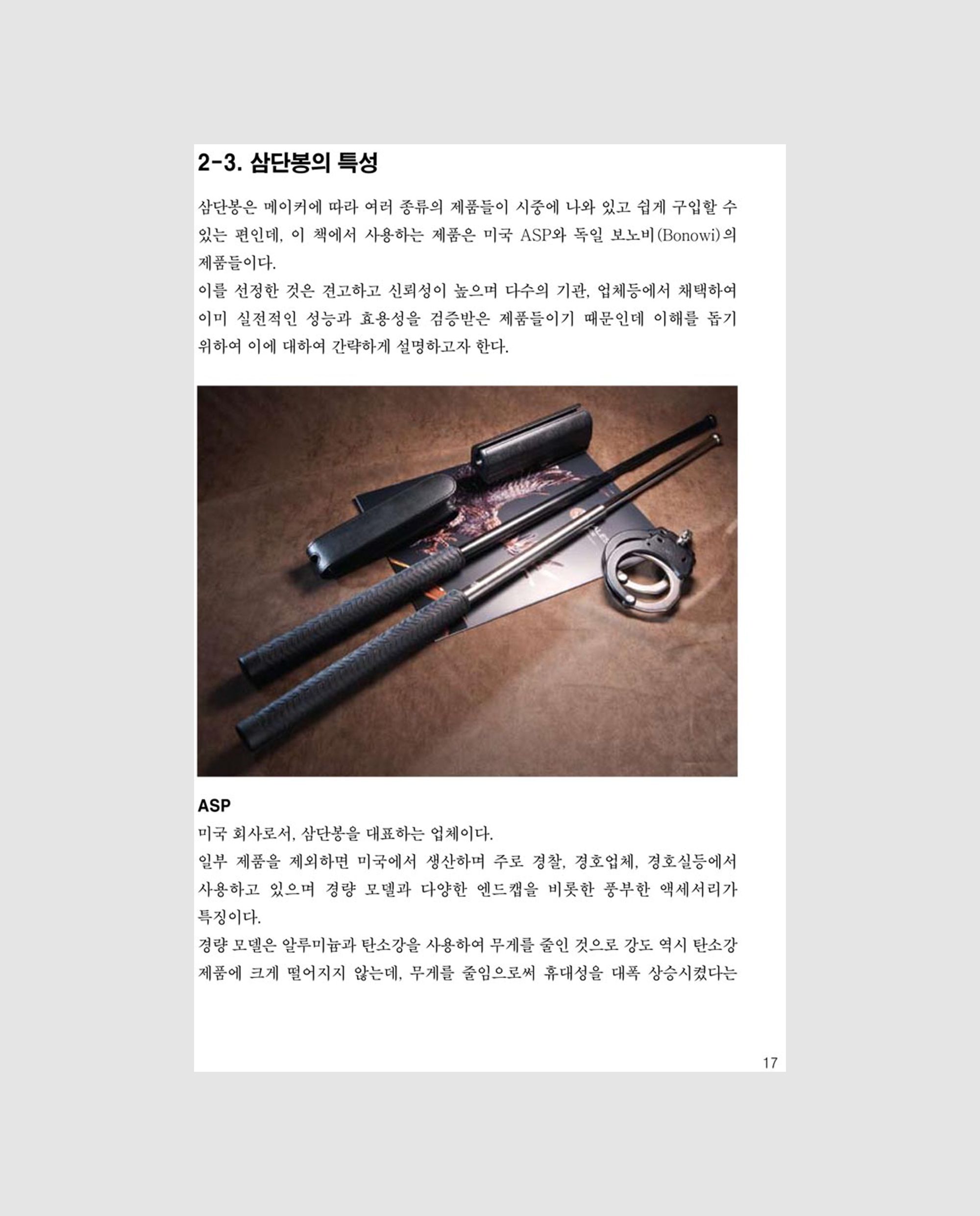 검도, 거합, 단곤술 등을 20여 년간 지도한 한정욱 대표의 저서 [삼단봉 실전타격법]은 그의 지도 이론과 경험을 바탕으로 집필한 실전 응용 최우선의 삼단봉 수련 교본으로, 국내에서는 거의 전무했던 체계적 교재라는 점에서 의의가 크다. 삼단봉의 기본 타법부터 제압 기술까지 생활 속에서 실제로 적용 가능한 실질적인 기술들을 다루어, 범죄와 폭력으로부터 자신과 가족을 보호할 수 있도록 하는 데 목적을 둔다. 실용성과 접근성을 을 바탕으로 삼단봉 수련자뿐만 아니라 실전 호신술에 관심 있는 모든 이들에게 필수적인 지침서가 된 [삼단봉 실전타격법]을 확인해보자.
