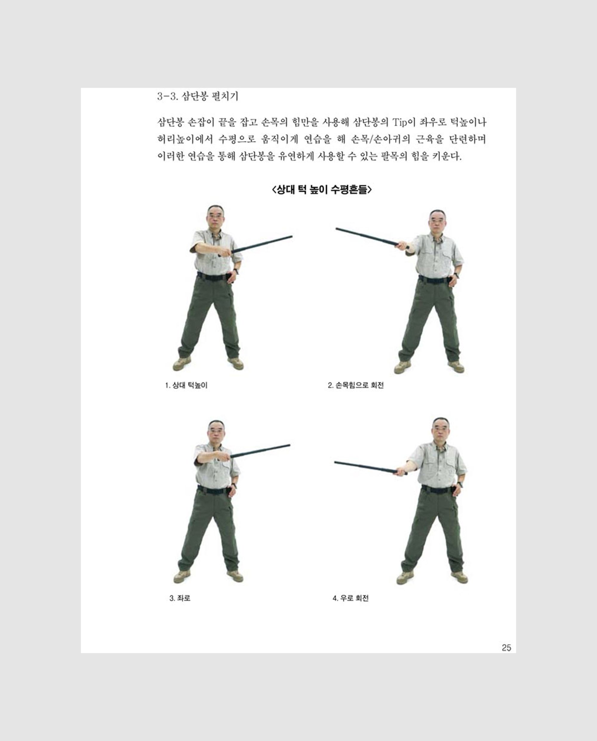Having taught kendo, iaido, and short-stick martial arts for over 20 years, Director Jungwook Han brings his training philosophy and extensive experience together in his book Practical Three-Section Staff Striking Techniques. As one of the few structured manuals of its kind in Korea, it carries significant value. The book covers everything from fundamental striking methods to control techniques—practical skills that can be applied in everyday situations—with the aim of helping readers protect themselves and their families from crime and violence.