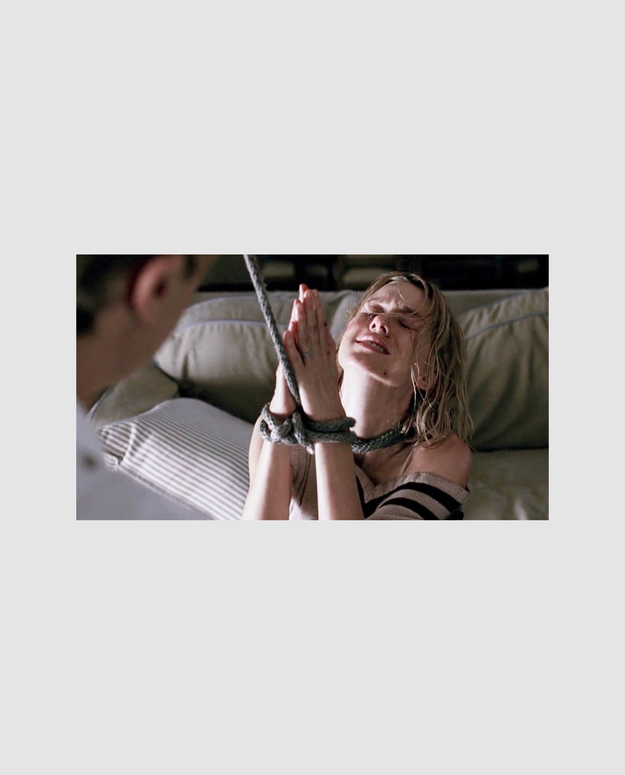 이 작품의 백미는 미치광이 두 청년의 권력이 영화 속 인물들을 넘어 스크린 밖의 관객에게까지 영향을 미친다는 점이다. 둘 중 리더 격인 '폴(마이클 피트)'이 카메라를 똑바로 응시하며 관객에게 말을 걸거나, 끈질기게 저항하던 앤이 극적으로 반격에 성공하려는 찰나 리모컨을 집어 영화 자체의 장면을 되돌려버리는 초현실적 권능을 행사한다. 이는 지켜보는 관객조차 무력감에 빠지게 하며, 정의와 구원의 실현마저 가해자의 손 끝에 달려있음을 선언하는 섬뜩한 장치다. 결국 권력과 폭력 앞에는 그 어떤 합리적이고 이성적인 인과율도 존재하지 않음을, 그 무자비한 관계를 기필코 증명해 낸다.