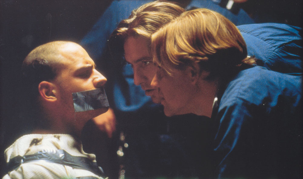 그런데 만약, 이 실험이 도중에 중단되지 않고 끝까지 계속되었다면? 영화 <엑스페리먼트, Das Experiment (2001)>는 실제 스탠퍼드 감옥 실험을 바탕으로 전개되는 작품이다. 택시기사인 '타렉(모리츠 블라이브트로이)'은 높은 일당에 홀려 제 발로 실험에 참여하는데, 하필이면 죄수의 역할에 당첨된다. 그러나 타렉은 호락호락한 성격이 아니다. 특유의 반골기질로 교도관의 권위에도 주눅 들지 않고 오히려 코웃음으로 응답한다. 반면 영화 초반 내성적이고 조용한 성격으로 등장했던 '베루스(유스투스 폰 도나니)'는 교도관 제복을 입는 순간 180도 변해버린다.